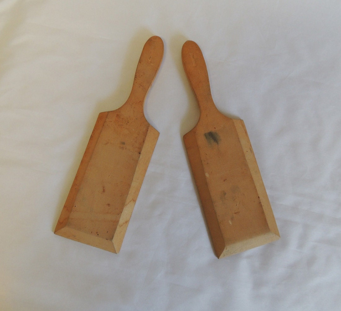 Matched Pair Vintage Antique Grooved Wooden Butter Paddles Shapers.. Germany