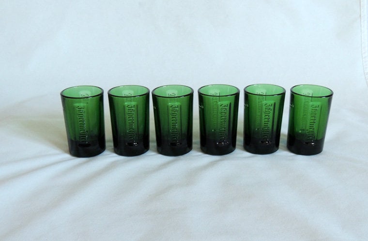 Jagermeister Green Glass Shot Glasses.. Set of 6 With Embossed Logo.. New