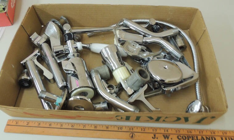A huge lot of mixed metal hardware pieces perfect for industrial salvage sculpture and steampunk art projects. Also could be used for repair or workshop supply. Includes approximately 11 pounds of mixed chrome and metal plumbing related pieces. You will receive exact items pictured (see photos). Yardstick is pictured in some photos to show relative size of lot and objects included in lot.