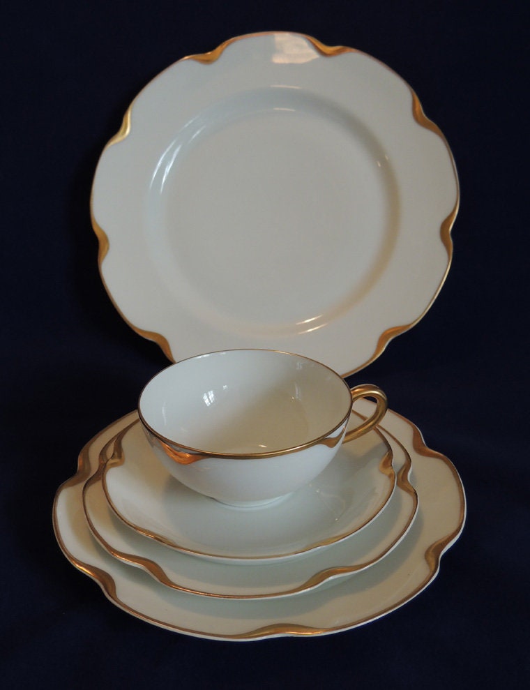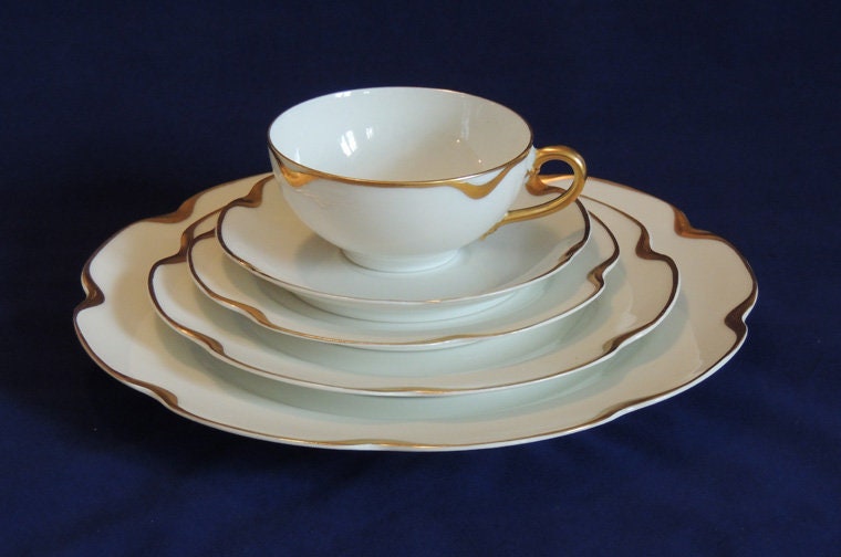 Vintage Haviland Silver Anniversary / 5 Pc Place Setting.. Gold Trimmed Limoges